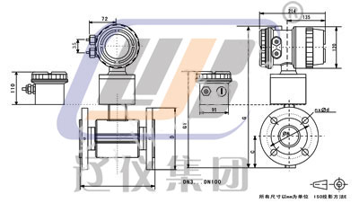 2)接地方式為接地電極(標(biāo)準(zhǔn)配置)時(shí),DN125-1000口徑,尺寸L不變。